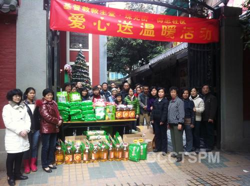 第二站——救会周边社区。救主堂已连续七年与仰忠社区合作举办“爱心送温暖”活动,今年将帮扶对象由往年仰忠社区扩大至珠光街,分别有仰忠、厂后、新福里、爱家园,四个社区共30户家庭得到爱心物品。1月15日,曾善美牧师及部分堂委、信徒代表救主堂向社区群众送上节日的慰问和祝福,社区群众有序排队领取爱心物品,他们纷纷感谢基督教会对他们的关爱。