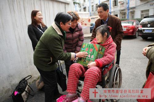 十点半,弟兄姊妹又去秣陵路社区送温暖、献爱心。与秣陵路社区的黄主任等工作人员探望孤寡老人、残疾人(20户),向他们拜年,并送米、油、鸡蛋、盐水鸭等年货,带去节日的问候。