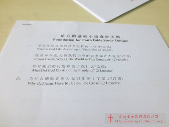 2014年1月5日(主日),南京市基督教莫愁路堂英文团契为初信慕道友开设的“信心基础”班正式开课,时间为周日下午两点,地点为副楼三楼311教室。