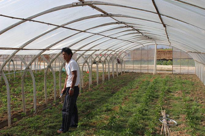 记者跟着牧师进去塑料大棚后,明显感受到了和外面不同的温度,如果再呆几分钟一定会出汗,赵老师一边工作一边和牧师说话,他是福音戒毒成功者,一看,他的额头上满是汗,旁边的几个工人是雇用的,她们一直低着头干活,修剪着辣椒苗,有的辣椒苗上已经结出小辣椒了。