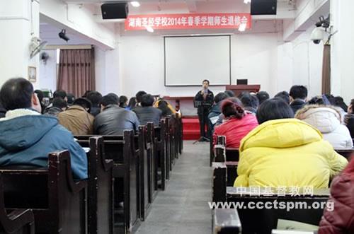 2月17日至19日,湖南圣经学校举行了2014年春季学期退修会,本次退修会围绕着“召命与使命”这个主题进行了分享与讨论。邀请的讲员与嘉宾有香港伯特利神学院院长陆辉博士、香港宣道会阮成国牧师、许金根牧师、香港房角石协会颜静干事等。