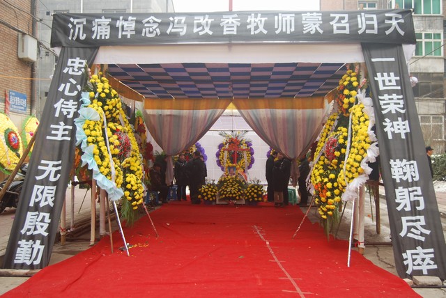 亲朋好友们,弟兄姊妹们,就让我们以更加努力的工作精神,把我们的家,把我们的教会建设的更加美好,以慰冯改香牧师的在天之灵吧。亲爱的冯牧师,我们的妈妈,您一路走好,安息主怀!