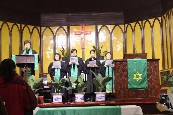 “世界各地你所拣选的人都聚在一起,向你献上祈祷与敬拜。”北京市基督教会崇文门堂柳翠敏牧师在公祷会中证道,她在证道之前带领会众一同祷告。