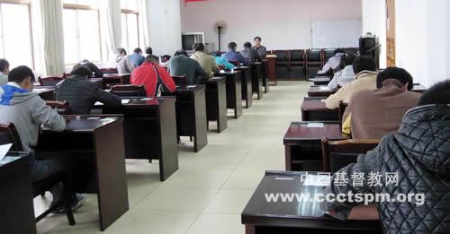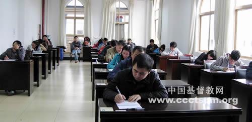 2014年3月14日上午8:00,金陵协和神学院本科招生考试在昆明考点举行,来自云南、四川、贵州、重庆的22位考生在云南省基督教两会多功能厅参加考试。金陵协学神学院林文恩老师到昆明监考,云南省基督教三自爱国运动委员会副秘书长海金华等同工协助考场工作。