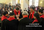 认捐奉献礼由云南省基督教协会会长兼三一国际礼拜堂主任靖玖玮牧师主礼,省基督教协会总干事兼三一国际礼拜堂副主任邵立良牧师、省基督教三自爱国运动委员会副秘书长兼三一国际礼拜堂副主任罗舒引牧师等同工襄礼。三所教会的教牧同工、信徒感谢上帝的引领和祝福,同心祈求上帝为北辰基督教堂的建设预备资金,祈求上帝从天倾福于踊跃认捐和奉献的弟兄姊妹,使他们因着奉献爱主更加福上加福,恩上加恩,力上加力。
