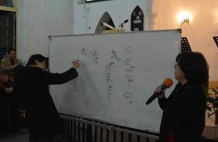 昨日晚,以“我只看我所有的!”为个人座右铭的黄美廉博士于镇江大西路福音堂展开励志短讲,约800人参加。她依旧用笔来分享自己的成长过程及大家所提的问题。