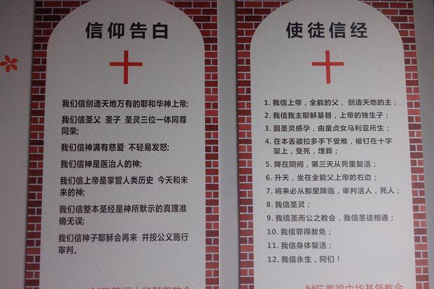 教会的墙壁上明确写着信仰根基的原则和纲领。
