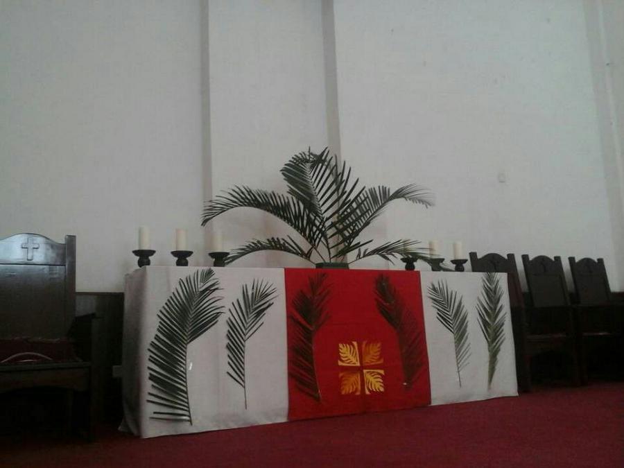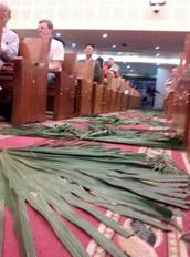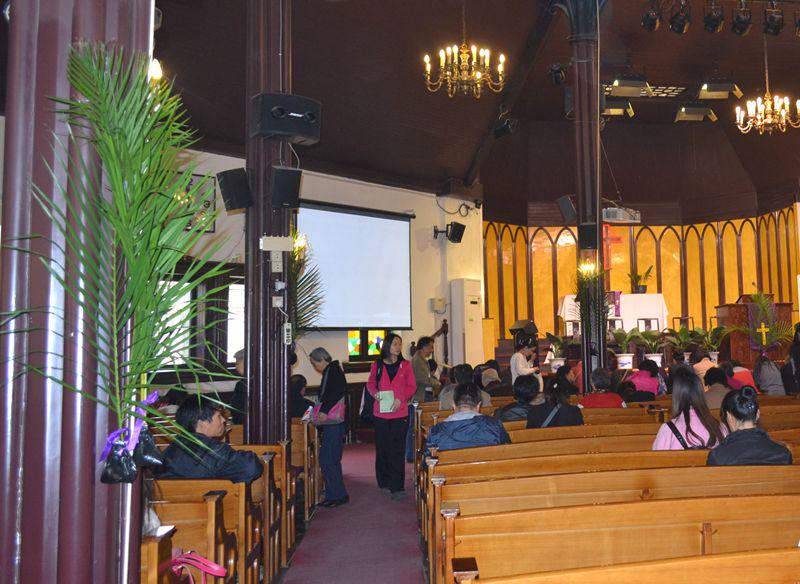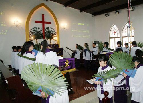 那么,我国教会是怎样庆祝这个日子的呢?不同的教会也有所不同。例如燕京神学院内的礼拜堂在棕树枝贴在墙壁上,并摆设在讲桌上,另外还座椅上。而北京崇文门教堂内的柱子也用棕树枝做了装饰,地下室的墙壁上也随处都能看到棕树枝。