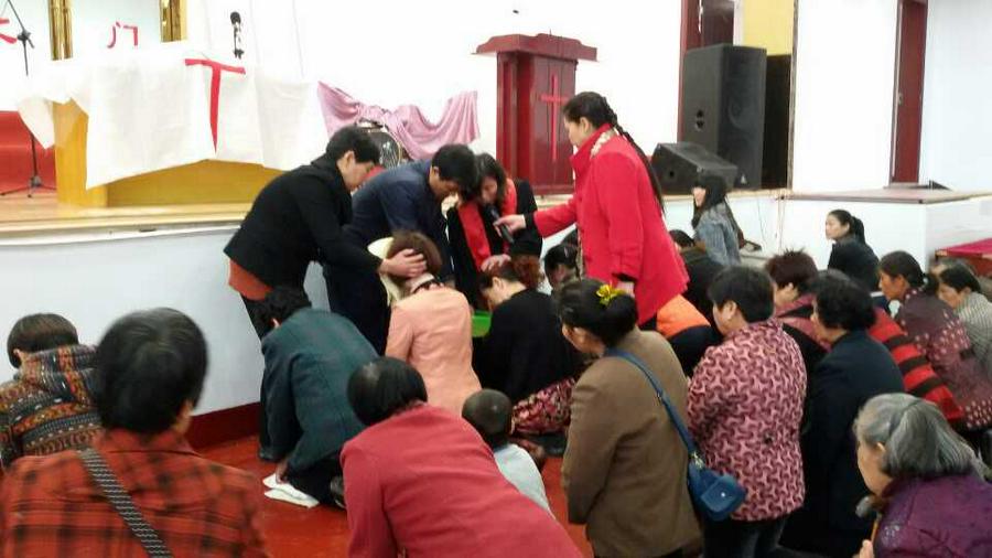 4月20日,2014年的复活节,在即将举行献堂典礼的赤壁市基督教堂里,近50位弟兄姊妹接受洗礼,归入耶稣基督。