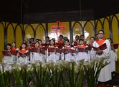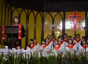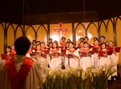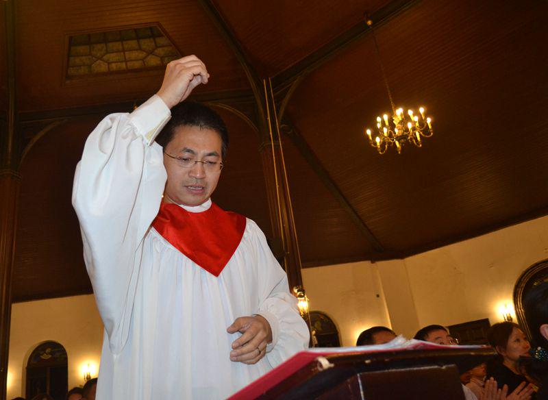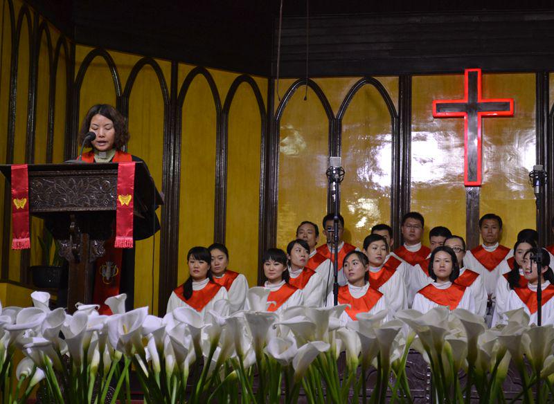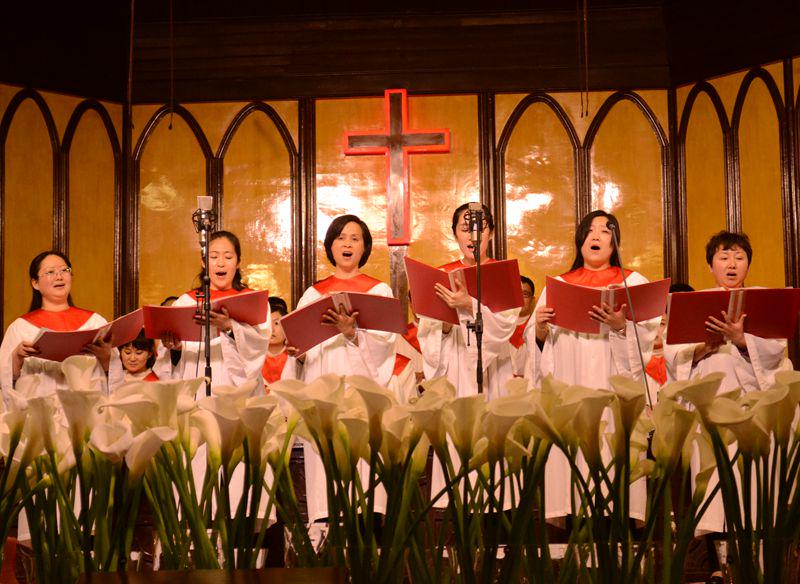 随后,联合诗班(包括大圣诗班、女子圣诗班、青年圣诗班)全体成员献上了第一首赞美诗《基督今复活》。“救主恩爱大无比,为要拯救我和你……”歌声从讲台上传到主堂和复堂的每一个角落,地下室的弟兄姊妹们也通过音响仔细聆听。这首圣诗的最后,在唱到“主基督复活,活到永远”的“永远”两字时,音调突然拔高,似乎要冲破教堂的屋顶,直上云霄。