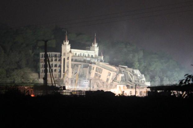 经过一天的拆除工作之后,28日晚8:35分,三江教堂钟楼倒塌,一个多小时后,主体全部倒塌。
