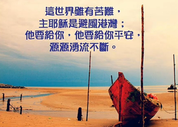 当灾难发生后,很多人的心恐怕都被不安、恐惧占据,但耶稣说“我将这些事告诉你们,是要叫你们在我里面有平安。在世上你们有苦难,但你们可以放心,我已经胜了世界(约16:33)。”今天,在这里推荐的歌曲,要告诉人“耶稣能给你真正的平安。”