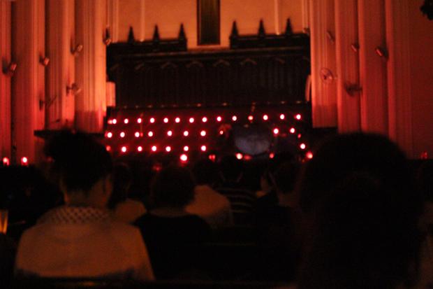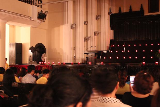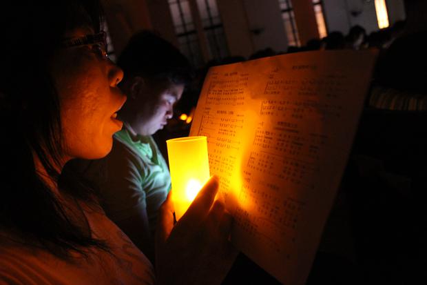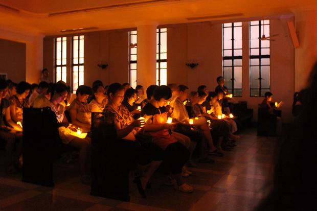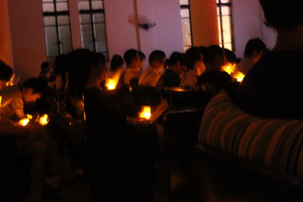 祈祷会于当晚七点半正式开始。信徒们一手蜡烛,一手歌单,静默有序的步入大堂。台前摆满了蜡烛。祈祷开始,黑暗中只有台前的蜡烛和会众手中的蜡烛被点亮,在主礼人的带领下,大家低声地吟唱出一首又一首赞美诗,音乐是一首首的短诵,歌词简短,旋律容易上口,在一遍又一遍的重复中让会众在无形中平静下来,专心与神亲近。