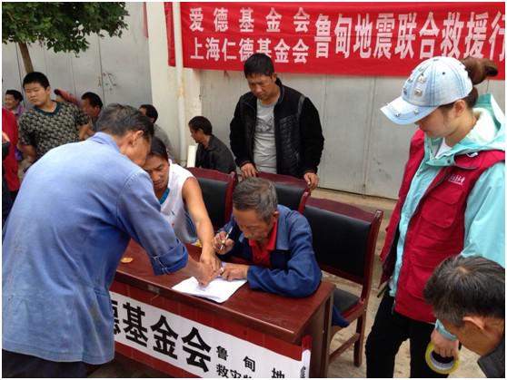灾区前几日阴雨连绵,许多临时安置的群众仍然暴露在风雨中无处遮蔽。爱德基金会鲁甸救援队19日在机车村发放了由上海仁德基金会捐赠的100件防雨布,为受灾群众挡风遮雨。发放现场秩序井然,许多村民志愿参与维护现场秩序、登记、发放。领取物资的村民自觉排起了长队,签字领取。“今天晚上不用淋雨喽!”一位老大爷一边签字一边说。