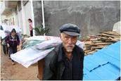 机车村发放现场,村民领取上海仁德基金会捐赠的防雨布