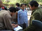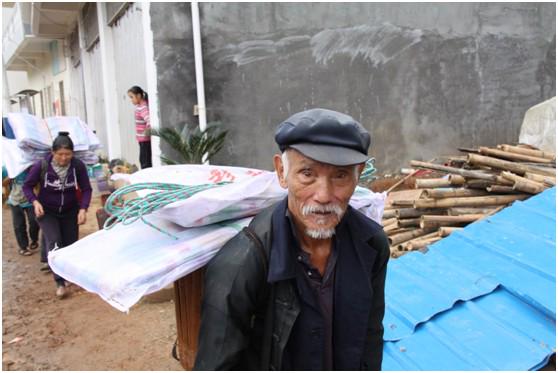 该村目前有四个社尚未通路,船边社就是其中之一。听名字就能猜到,船边社地处大山脚下的江边。从位于山腰的机车村到该社至今尚未通路,连摩托车都没办法进出,村民全都依靠双脚来往于山间小路。在知道会有防雨布和食用油发到他们手中后,船边社的村民们一早就徒步了五公里山路来到了位于机车村的爱德救援队物资发放点。