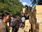 8月19日,用此笔捐赠资金采购的1200套洗漱套装(包括3千克洗衣粉,4块肥皂,2块香皂,4支牙刷,2条毛巾,2个脸盆,1支牙膏,1个漱口杯,1瓶洗发水)由爱德紧急救援队突破重重困难送抵鲁甸县火德红镇。