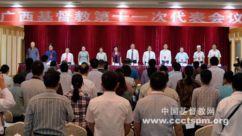 广西基督教第十一次代表会议于2014年10月24日召开,来自全区各地教会99名代表参加会议。中国基督教三自爱国运动委员会主席傅先伟长老莅临会议并做重要讲话。