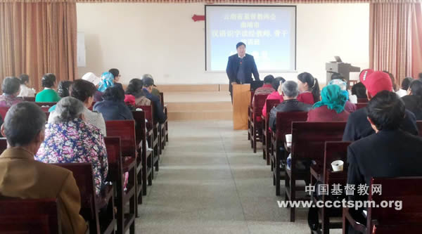 云南省基督教两会在曲靖市基督教两会基督教培训中心于2014年10月27日至11月1日举办汉语圣经识字班骨干教师培训班,来自曲靖全市教会的106位教牧同工参加了培训。