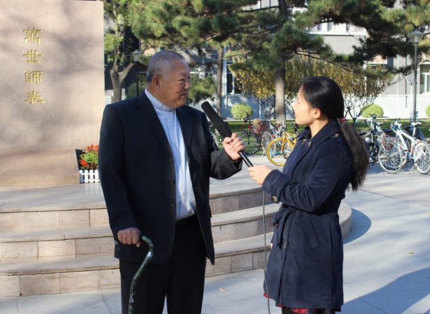 11月6日,北京福音时报的同工在传媒大学专访洪光良牧师,在传媒大学的孔子雕像前,洪牧师分享了基督教与中国文化的关系。