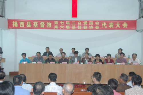 11月8日,揭西县基督教在河婆堂召开第七次代表大会,共有57名代表参加本次会议。揭阳市基督教三自爱国会主席、基督教协会会长许洁平牧师,市民族宗教局洪树林科长,揭西县民族宗教局许越成局长出席会议并作出重要讲话,揭阳市民族宗教局、揭西县政府有关部门领导、揭阳市各县(市、区)基督教两会负责同工到会祝贺。