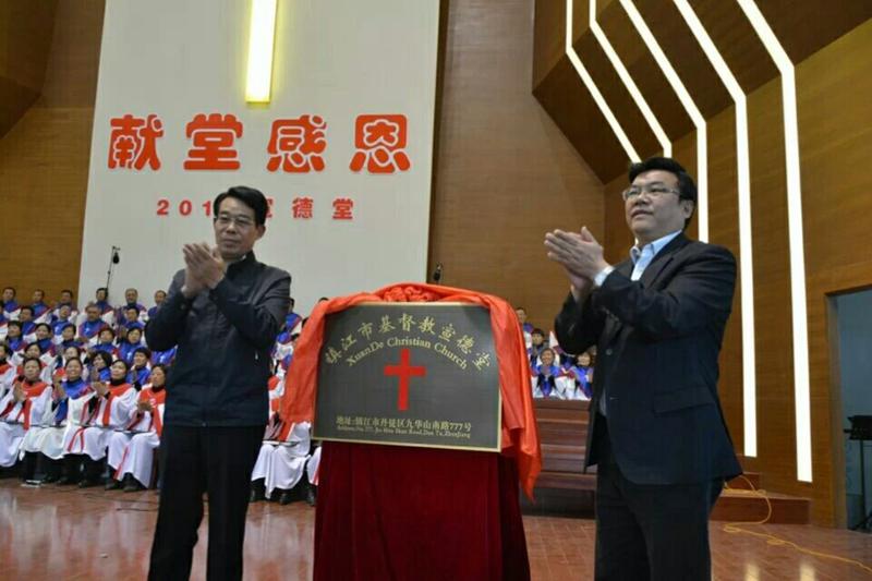 在接下来的环节中,尹素华牧师简介建堂经过,感谢市区各部门的大力支持,感谢教会弟兄姊妹的代祷和奉献。浙江省基督教协会会长、杭州崇一堂主任牧师顾约瑟致“感谢、感恩、感言”的贺词,省基督教协会会长丘仲辉、市民宗局党组书记、局长夏和生、省宗教局党组副书记、副局长顾传勇先后讲话。镇江市胡宗元副市长、宦祥宝部长为宣德堂献堂揭牌。