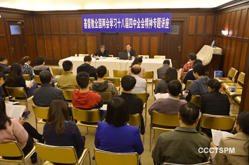 近日,基督教全国两会邀请上海市委党校学者举办专题讲座,组织全体同工学习中国共产党十八届四中全会精神。中国基督教两会主席傅先伟、会长高峰、副主席徐晓鸿、副会长阚保平、副会长单渭祥等主要负责人,以及近50位在会同工参加了学习。