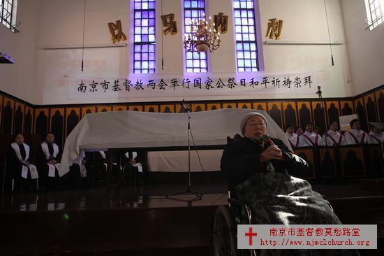 除此之外,原市基督教协会副会长、莫愁路堂前主任牧师、86岁的南京人徐恩赐牧师,原莫愁路堂堂委副主席、94岁的卜恺娣和原编辑作家、81岁的朱连根(朱煊)先生分别讲述了日本制造的南京大屠杀。最后,南京的五位牧者带领信徒们一起为和平祈祷。