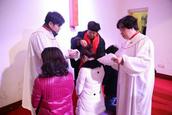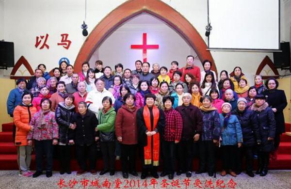 2014年12月14日(主日)上午,长沙基督教城南堂举行了本年度最后一次洗礼。在近千名信徒的见证祝福下,该堂主任牧师徐勇斌与两位教牧同工为57名决志信主的弟兄姊妹施洗。(消息来源:城南堂官网)