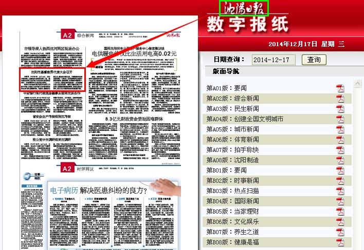 12月17日,沈阳市基督教界的新闻登上了沈阳市重要媒体《沈阳日报》第2版。12月16日,沈阳市基督教三自爱国运动委员会第十届、基督教协会第五届代表大会在东关基督教堂举行。