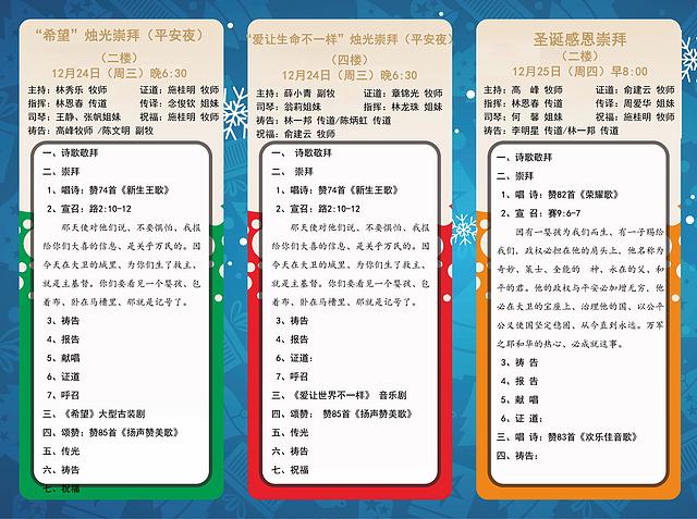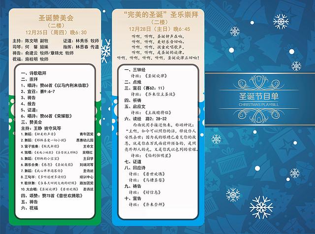 一年一度的平安夜、圣诞节即将来临,值此之际,福建福清福华堂为让众弟兄姐妹了解节目的编排情况,特发布详细说明。