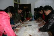 此次活动以师生合作、男女搭配的形式分为三组,一切准备就绪后,大家开始忙了。为了取得第一,每个小组都充分发挥成员的个人优势,有负责擀皮的,有负责包的,忙得热火朝天,不亦乐乎。不一会工夫,“最有勇气活着的饺子”、“最标致饺子”、“最唯美饺子”等形式各异的饺子呈现在大家的面前,看着美味的馅被裹进饺皮,变成一个个精致的饺子,大家脸上洋溢着兴奋与自豪。