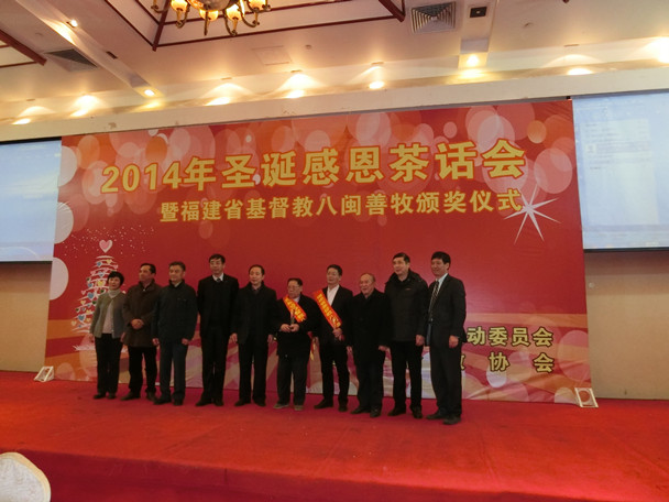 临到圣诞节,福建省基督教两会特于12月19日举行圣诞感恩茶话会,省基督教两会会务成员、福建神学院部分师生、福州教会的牧者和信徒代表等共230多人与会。会上还举行了“八闽善牧”颁奖仪式,表彰了来自福州市基督教铺前堂的陈朝辉牧师、泉州晋江市陈埭基督教堂的施比受牧师。