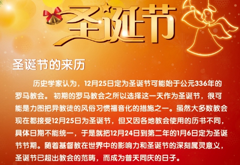 不过,圣诞节并不是12月24日、25日之后就立刻结束了。事实上,这两天并不是宣告了圣诞节的结束;恰恰相反,这两天所宣告的是:圣诞节节期已经开始。