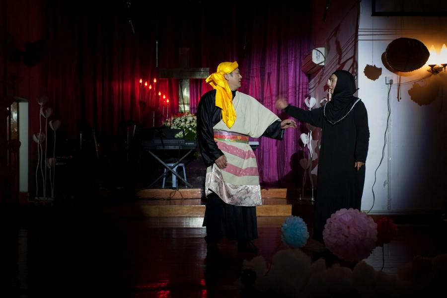 接下来,男女老幼都呈上精心排练的节目:主日学儿童手舞丝带,摇着手中的打击乐,和着传统世界名曲《欢庆圣诞》,将孩子般单纯快乐的感受带给会众。舞蹈《普天同庆》,姊妹们温婉的笑容,优美的舞姿如正在绽放的花朵般圣洁美丽。此外,男女二重唱《最珍贵的角落》、相声《忙人寻主》、男生独唱《将天敞开》、常青树赞美操《主祷文》、器乐合奏《普世欢腾》、《铃儿响叮当》、女声独唱《圣诞快乐》、圣剧《有一条路》、舞蹈《恩典的记号》、赞美团《赞美之家》、《愿你国度降临》……节目精彩纷呈,让会众时不时发出惊叹!