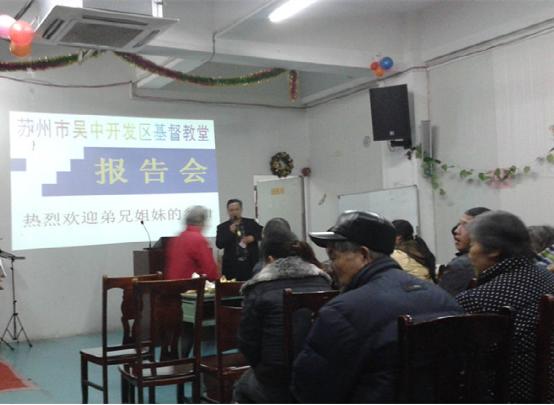 2014年12月30日19:00,苏州市吴中开发区基督教堂充满欢声笑语,赞美的歌声早早唱起。吴中开发区基督教堂举行了2014年终总结2015工作计划报告会。教会的堂委会及各个事工组所有参与服侍的弟兄姐妹及部分信徒代表100多人参加了此次的报告会。