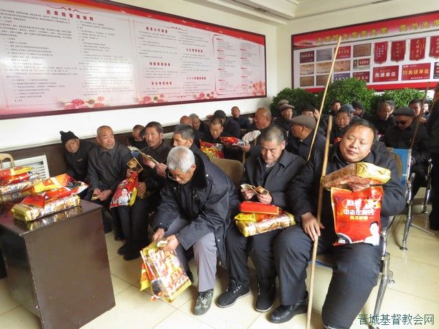 1月6日,陵川教会和西河底、丈河教会的十余名同工聚集在陵川教会,花费约2200元购买65份老年人所需物品,带到光荣养老院,送至那里的老人手中。
