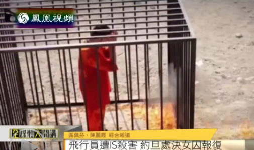 约旦战斗机飞行员莫阿兹·卡萨斯贝一月份被IS处以火刑,其残忍画面震惊世界。近日,该恐怖组织表示卡萨斯贝被关进笼子活活烧死前注射了大量镇静剂,以致于他意识不到即将发生什么事情。