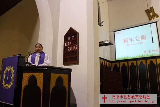 据莫愁路堂网站消息,此次聚会由王守禄弟兄主持,樊蕾牧师以《新年立愿》为主题证道,通过分享哈拿的祷告蒙神应允的事迹,勉励会众要学会不看环境,单单仰望神,同时要操练祷告,和父神亲切相交,做一个大有祷告能力的人。
