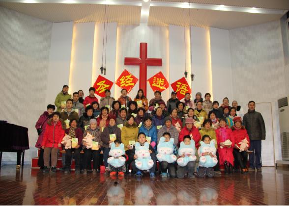 合影(图:徐州市基督教复兴堂)为丰富广大信徒在新春佳节期间的信仰生活,增强肢体彼此联络的认同感和对教会的归属感,进一步筑牢抵邪防渗的防线,2015年3月1日晚,江苏省徐州市基督教复兴堂举行第三期趣味圣经谜语活动,八十余位信徒积极参与。