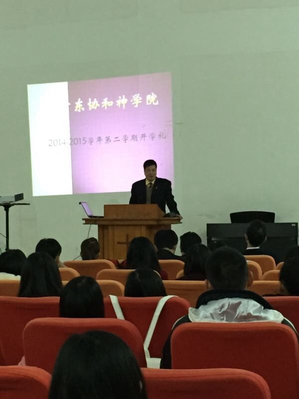 3月2日,广东协和神学院2014-2015学年第二学期开学典礼在演讲厅举行,全体师生及神学院同工参加。