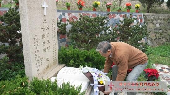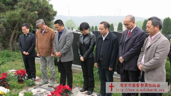 4月3日耶稣受难节这一天,全国基督教三自爱国会主席傅先伟长老与全国基督教协会副会长、《天风》杂志的主编单渭祥牧师及胡弟兄、房赢姊妹一行从上海来到南京为安息主怀的丁光训主教、韩文藻博士扫墓,金陵协和神学院的教务长林曼红博士、严锡禹教授随行。