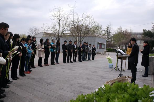 4月4日是纪念耶稣基督被埋葬在坟墓当中的一天,也是受难周的最后一日。当天清晨,燕京神学院师生与会众聚集在院礼拜堂内,一同纪念“主在坟墓中”。在当天的崇拜上,圣坛上的四支蜡烛,随着经训的宣读完毕,也一支一支地熄灭。