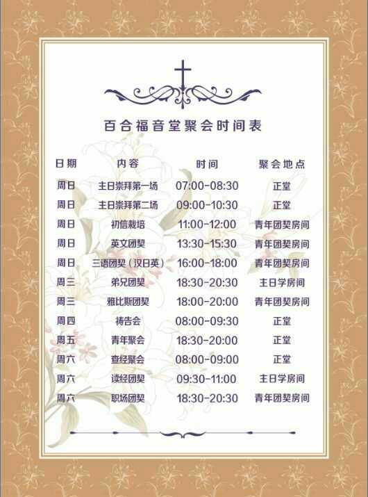 大连基督教百合堂青年团契重启海报据大连基督教百合堂(位于大连百合山庄对面)同工微信消息,该堂于4月10日重启青年聚会。聚会时间为每周五晚6点半到8点,该堂主任牧师白牧师为此准备了《合神心意的婚姻与家庭》的系列讲道。