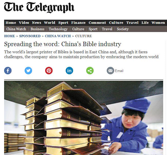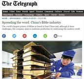 4月21日,英国《每日电讯报》(《The Telegraph》)以“Spreading the word: China’s Bible industry”为题对爱德印刷进行了报道,文中谈到了爱德印刷圣经的数量、在成本控制上所面临的压力、纸张质量以及智能手机圣经的研发。