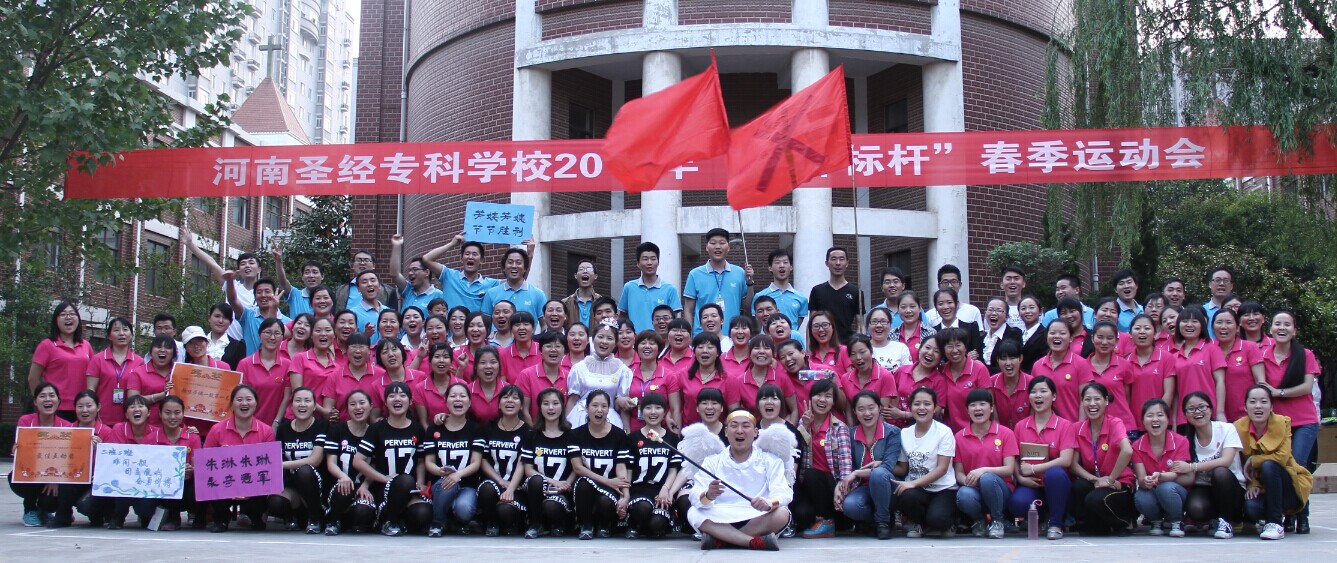 2015年4月23日,河南圣经专科学校为丰富神学生的课余生活,强化身心健康意识,举办为期一天的主题为“直奔标杆”春季运动会。