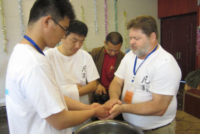 爱德基金会的工作人员、琼妮的朋友们和徐州教会的志愿者一起,力图按照圣经的教导,学习耶稣基督的样式表达对残障孩子家庭的关爱。他们纪念福音书里耶稣给门徒洗脚的记载,对每个参与侍奉的志愿者施行洗手礼,并为他们虔诚祷告,祈求耶稣的同在并亲自的带领。活动正式开始的每一天他们都检查进行晨间的默想祷告。
