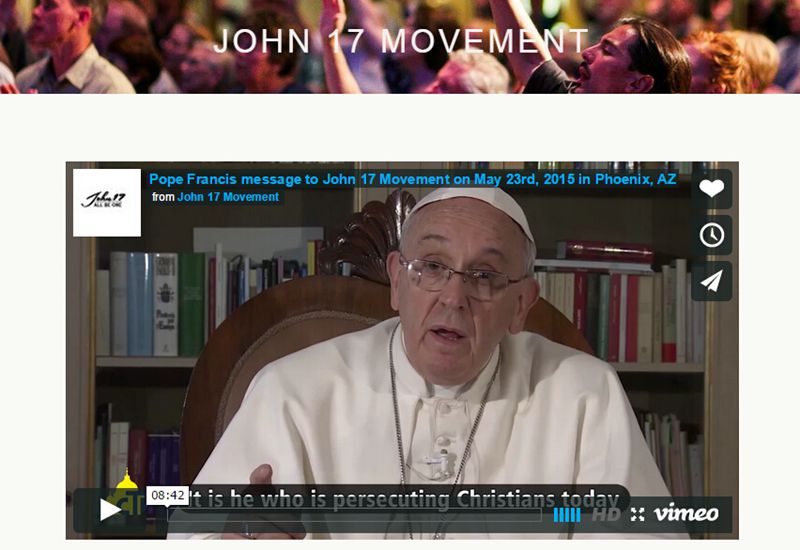 教宗方济各积极推动了这一合一运动。在“John 17 Movement”的社交媒体上,发布了一系列这位态度开明的教宗的讲话。在这些讲话中,方济各使用西班牙语讲论,并在此强调合一的主题。他说,魔鬼知道基督徒是基督的门徒,他们属于一体,是兄弟!魔鬼不关心基督徒是属于福音派、正统派,抑或是路德宗,或者是天主教……