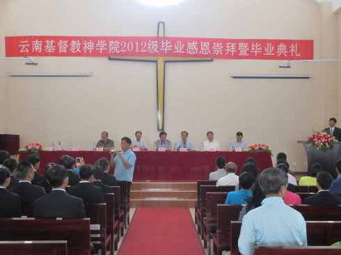 神学院院长罗德顺牧师在致辞中希望毕业生能够专心仰赖上帝,众人以为美的事要留心去做,宣讲和谐、和好、和睦的信息,担当责任,成为云南教会的祝福。