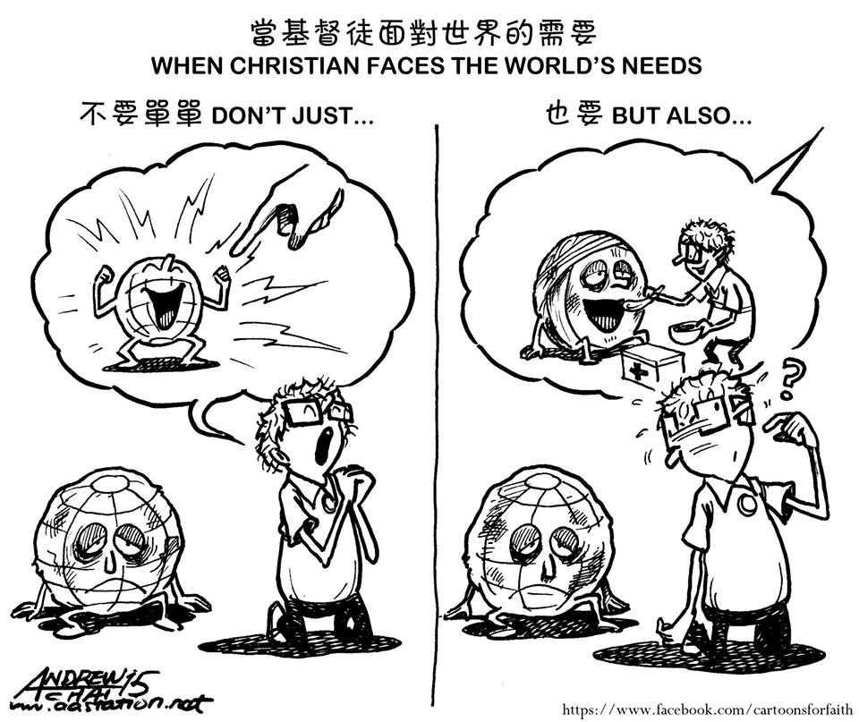基督教信仰不能成为飘在空中的一套理论,基督徒不能只会夸夸其谈却不用生活来见证自己的信仰。当基督徒面对生活中的种种现实时,也会有与世人同样的想法。然而,我们需要跟着圣经的教导不断归正。那么,如何把基督教信仰通过生活真实地活出来呢?蔡颂辉牧师最近发表的这10幅漫画或许能够给你帮助。